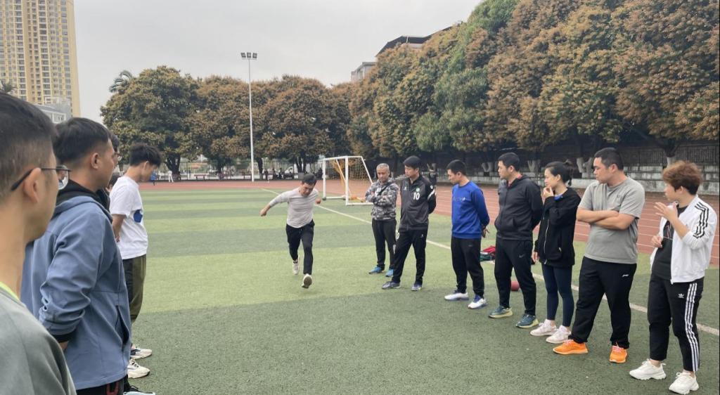活动最后,由庞毓恩副教授在田径场现场展示立定三级跳远练习手段与注意事项,很好的解决本次集体备课的焦点问题。
